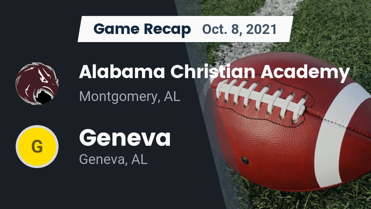 On 1028 the Alabama Christian Academy varsity football team won their away non-conference game against Montgomery Academy Montgomery AL by a score of 31-21. Check out the video above for highlights and final scores from a few local games. View pregame in-game and post-game details from the Montgomery Catholic Montgomery AL Alabama Christian Academy Montgomery AL.